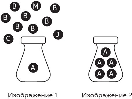 Изображение 1. Когда нам недостает A, мы пытаемся восполнить этот недостаток с B, С, J или M.