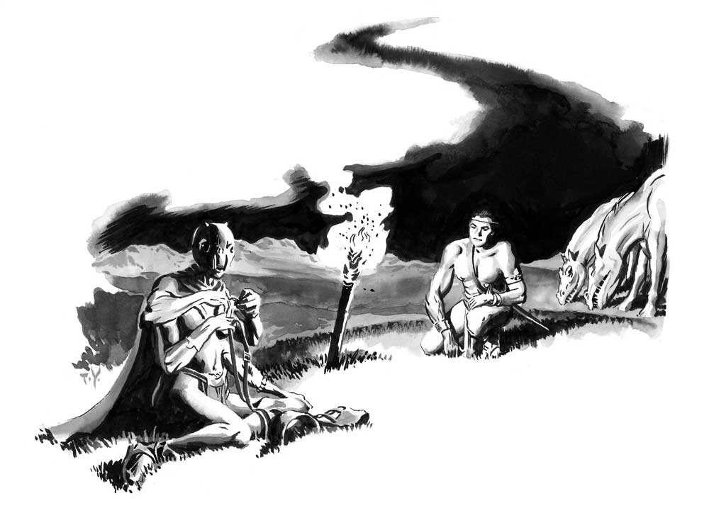 Успокоив его несколькими словами и лаской, я огляделся в быстро наступавшей тьме, но не увидел Деи Торис и окликнул ее по имени. Из дальнего угла помещения послышался невнятный шум, и в два шага я очутился рядом с ней, съежившейся среди вороха шкур и шелков на древнем резном сиденье. Я остановился напротив, а Дея Торис встала, выпрямилась во весь рост и сказала, глядя мне прямо в глаза: