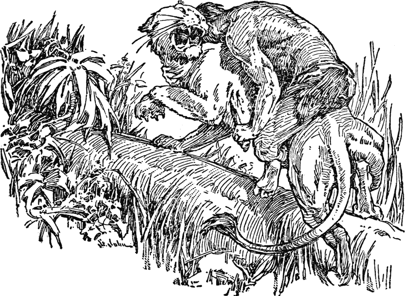 Тарзан внимательно посмотрел на молодого человека, словно не мог решить, как быть дальше, а затем, присев, жестом приказал англичанину обхватить себя за шею. С белым человеком за спиной Тарзан снова поднялся на деревья.