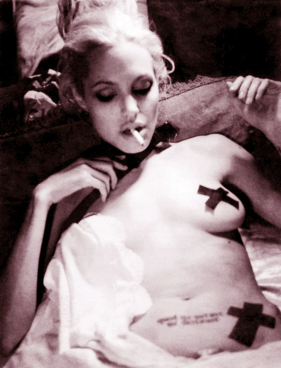 Однако одного, увы, и Маршелин с ее то ли потворством, то ли мудростью не могла предвидеть – неуемной страсти Анджелины, ее жадности к чувству, неутолимого эмоционального голода, потребности ощущать жизнь с максимальной яркостью… Обычный секс не мог насытить этой жажды. И однажды в порыве страсти она схватила нож и провела им по коже своего возлюбленного… тот в ответ сделал то же самое. Так началось болезненное увлечение, продолжавшееся два года и оставившее многочисленные шрамы на теле будущей голливудской красавицы. Садомазохистский секс заставлял ее чувствовать полнее и глубже. Возможно, именно на краю смерти она могла по-настоящему и в полной мере ощущать жизнь. Однажды эти игры и впрямь едва не закончились трагически: истекающую кровью Энджи увезли в больницу. Она едва не перерезала себе яремную вену. Кроме того, тяга к саморазрушению заставляет ее пробовать наркотики.