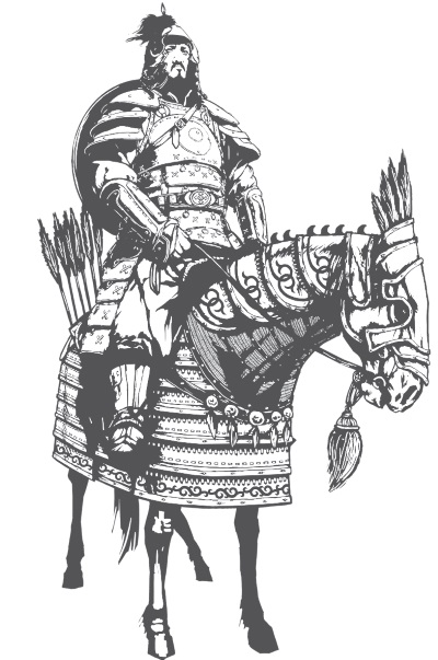 Только могучий гений Чингисхана, как государственного мужа и военачальника, позволил объединить в единый кулак под его жестким правлением вечно враждующие между собой кочевые народы на территории, простиравшейся от китайской пустыни Гоби до Междуречья[2], и создать тем самым предпосылки для основания империи. Империи, на столетия превратившей ватаги диких кочевников в господ над народами Востока, имевшими древнюю культуру, такими, как персы и китайцы. Завоеватели не могли долго противостоять влиянию на них намного превосходившей их в культурном отношении цивилизации и быстро начали терять свою самобытность. Только просторы степей Внутренней Азии[3], а также поросшие травой ландшафты русского юга помогали им придерживаться своих обычаев.