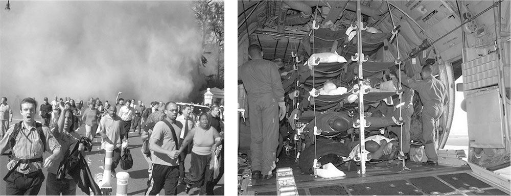 Активные действия и обездвиженность. Активные действия (результат реакции «бей или беги») позволяют избежать угрозы. Будучи же обездвиженным, тело остается в состоянии неотвратимого шока и приобретенной беспомощности[17]. Столкнувшись с опасностью, люди начинают автоматически вырабатывать гормоны стресса, которые помогают сопротивляться и спасаться. Мозг и тело запрограммированы бежать в безопасное место, где выделение гормонов стресса прекращается. У этих привязанных к носилкам людей, которых эвакуировали далеко от дома после урагана «Катрина», уровни гормонов стресса остались повышенными, и они обернулись против них, способствуя непрекращающемуся страху, депрессии, гневу и физическим недомоганиям.