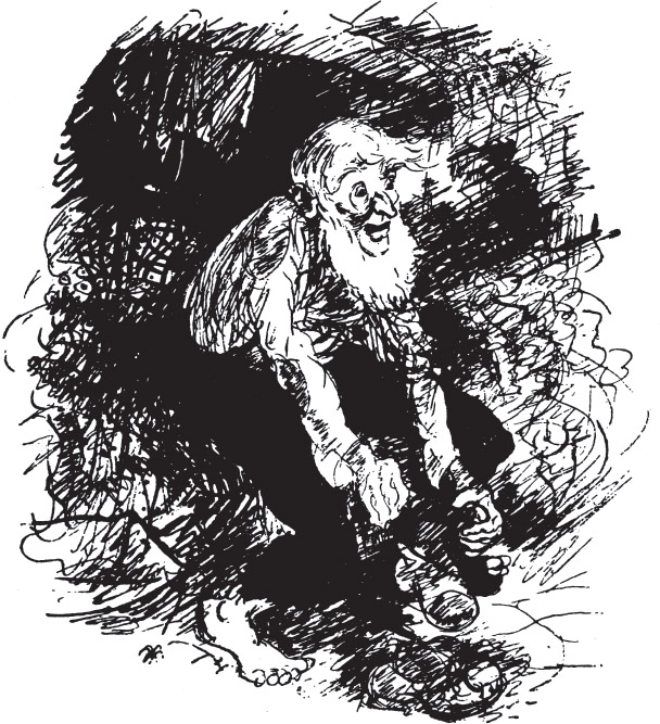 Instead of ‘up’ I should perhaps have written ‘down’ for Sam and his grandfather lived in a cave, and Sam slept in the top bunk. It was made of rough planks, and it was filled with hay; sometimes when Sam was getting out of it he stepped on his grandfather’s long beard, because it was warmer than the stone floor. Which shows the sort of person he was, because no polite little boy would deliberately step on his grandfather’s beard, however warm it might be.