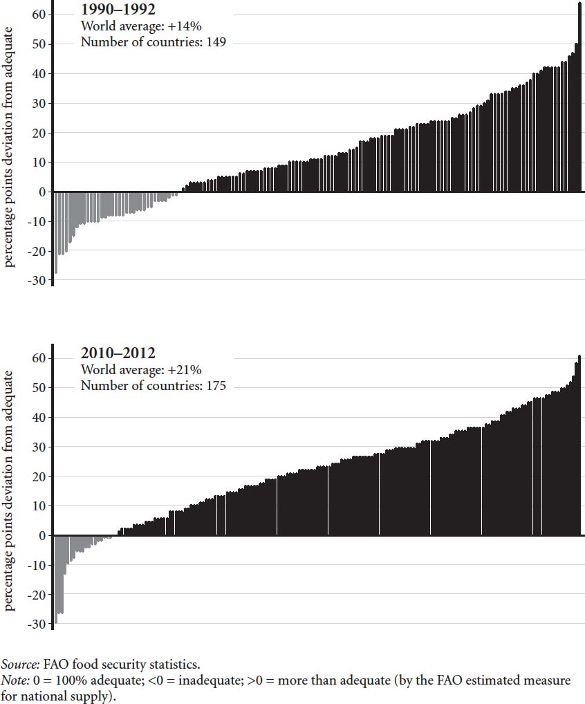 Average energy use versus average energy need: this graph shows the vast rise in the oversupply of food in most countries since 1990.