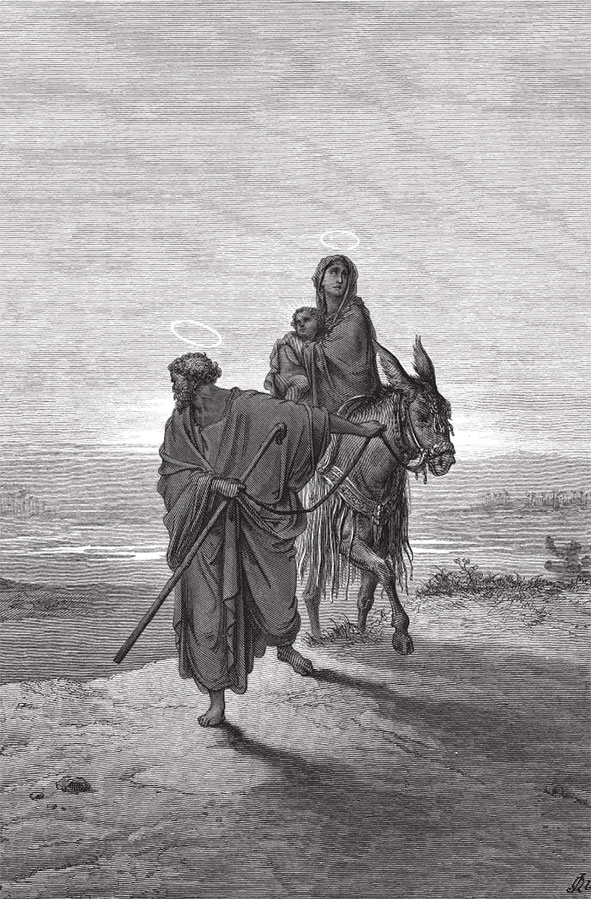 Бегство Иосифа с Пресвятой Богородицей и младенцем Иисусом Христом в Египет. (Евангелие от Матфея 9:13–15)