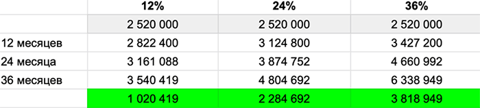 Таким образом, депозит в 2,5 млн руб. принесет чистый доход за три года в размере от 1 до почти 4 млн руб. То есть даже при среднем сценарии через три года вы сможете удвоить этот депозит, по сути, заработав на этот же автомобиль! Только вопрос, захочется ли вам тратить на него деньги, если можно инвестировать дальше и приумножать капитал. Помните про сложный процент!