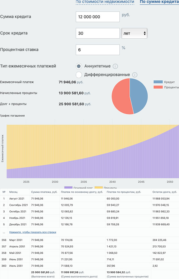Итак, к тому времени, когда Илон Маск уже колонизирует Марс вместе с 1 млн человек, которые будут там жить, вы закроете последний аннуитетный платеж почти в 72 тыс. руб., переплатив к этому времени банку процентов на 13,9 млн руб.