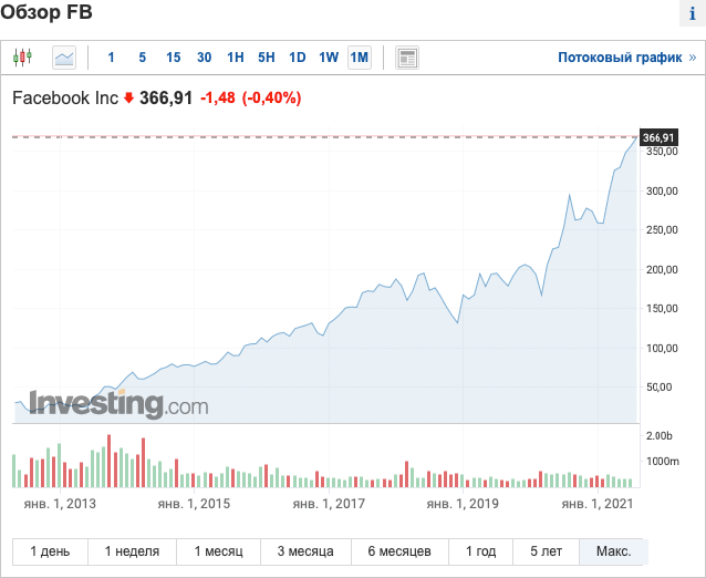 Были ли вы зарегистрированы на Facebook десять лет назад? Если вам 30–35 лет, то, скорее всего, да. Пользовались ли этой социальной сетью? Видели потенциал? Скорее всего, да. $ 15 в 2013 году и $ 367 сейчас – рост в 28 раз за восемь лет.