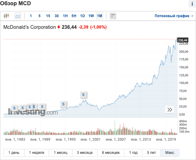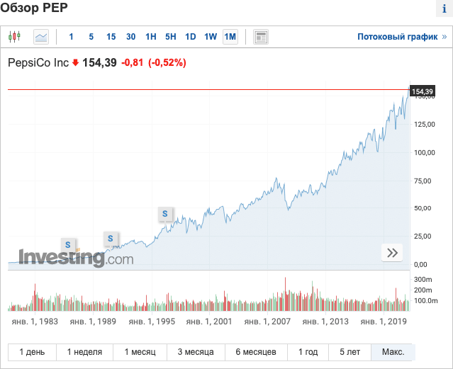 «Да это все техи, это сейчас пузырь, все это невозможно было предугадать…», – скажете вы. Ок, ладно, давайте совсем упростим выбор акций. Посмотрим на самое шаблонное и простое – «Макдак», «Колу» и «Пепси».