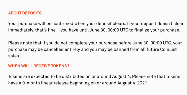 В день участия вам на почту придет письмо с напоминаем о том, что вы сегодня принимаете участие в первичном размещении, и вы увидите время, когда стартует размещение. Скажу так, если токен мегапопулярный, то шанс, что вы его купите, практически равен НУЛЮ.
