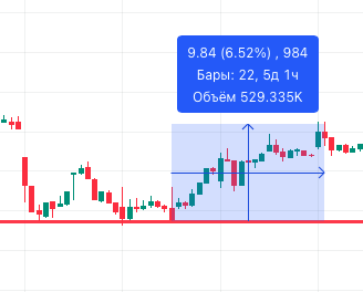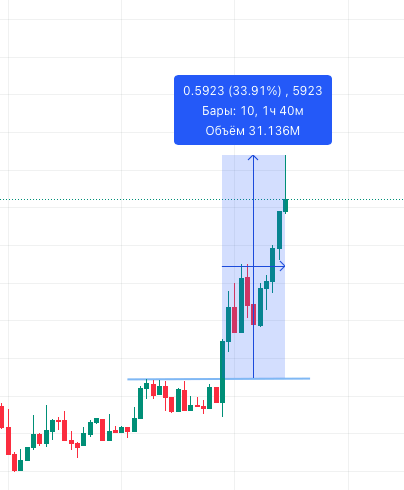 На примере видим, что локально была консолидация, последовал мощный импульс, и цена за 100 минут выросла практически на 34%