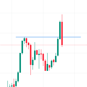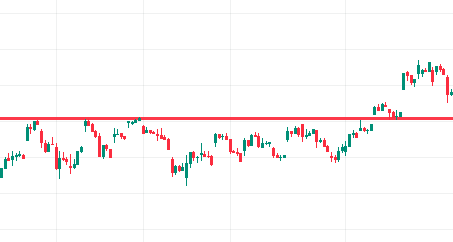Другой пример: мы долго бились в сопротивление, в итоге мы его пробили, сделали ретест, то есть сопротивление теперь стало поддержкой, и после этого цена пошла вверх.