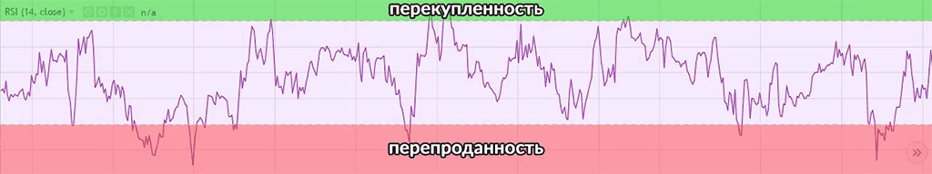 Когда индекс меньше 30, это значит, что финансовый инструмент становится в зоне перепроданности, то есть продавцов больше, чем покупателей и цена на актив падает.