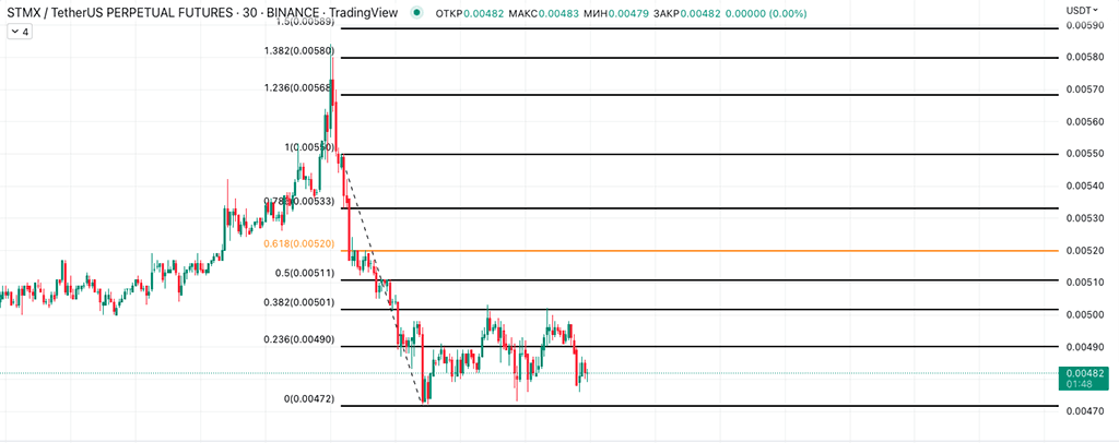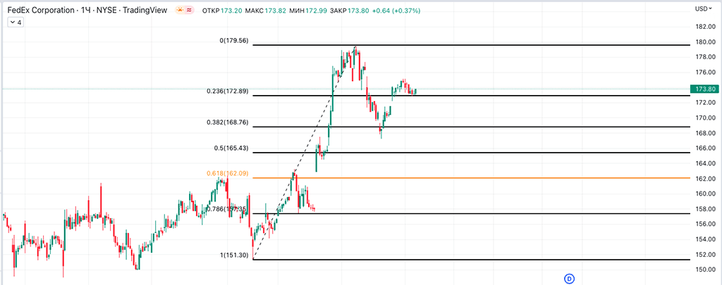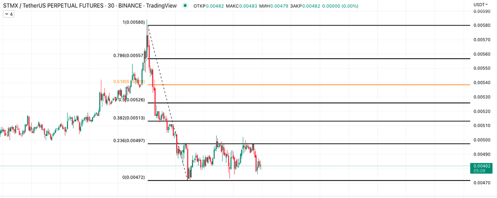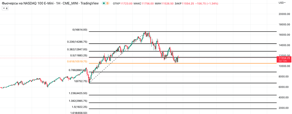 Сетку натянул по следующей логике: ковидный минимум 2020-го года и максимум 2021-го. Цена четко отбилась от уровня 0,618.