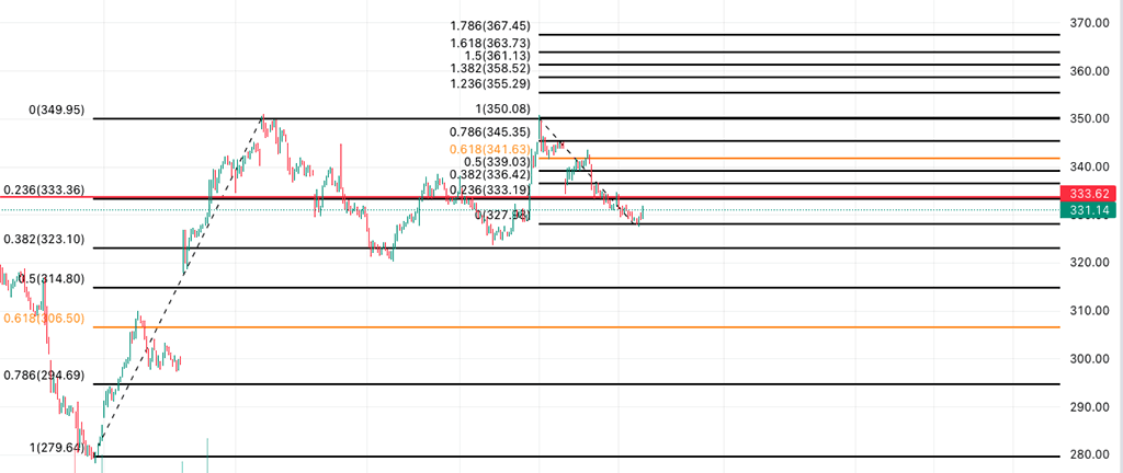 Как мы видим, цена четко реагирует на уровни фибо.