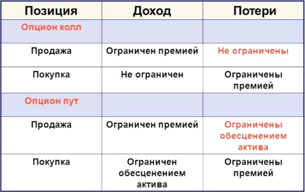 Покупая опцион call, трейдер хочет получить прибыль от роста базового актива. Он совершает выгодную покупку у продавца по контракту, где указана цена, ниже текущей стоимости акций. Приобретая опцион put, он хочет выгоды с падения цены, ведь его риск ограничен ценой, установленной в контракте с продавцом, которому уплачена премия.