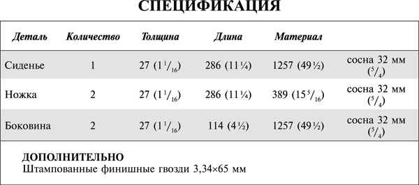 Соответственно, отпадает необходимость склейки. Разрежьте доску длиной 3658 мм (12 футов) на пять частей, которые и будут составлять лавочку. Вырежьте детали в соответствии с размерами в спецификации.