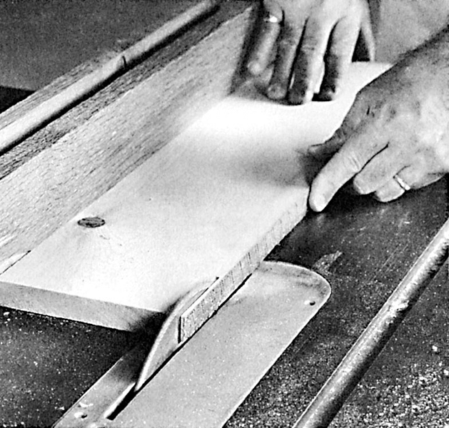 2. Обрежьте доску до «фуговальной толщины». Вторая фаза примерной обрезки доски заключается в ее продольном пилении. Перед выравниванием доски в фуговальном станке необходимо уменьшить ее ширину до ширины, предусмотренной характеристиками станка – в случае моей машины Delta это 152 мм (6 дюймов). Во многих случаях доска будет достаточно прямой и плоской для распиловки стандартным способом, как показано на фото Шаг 2.