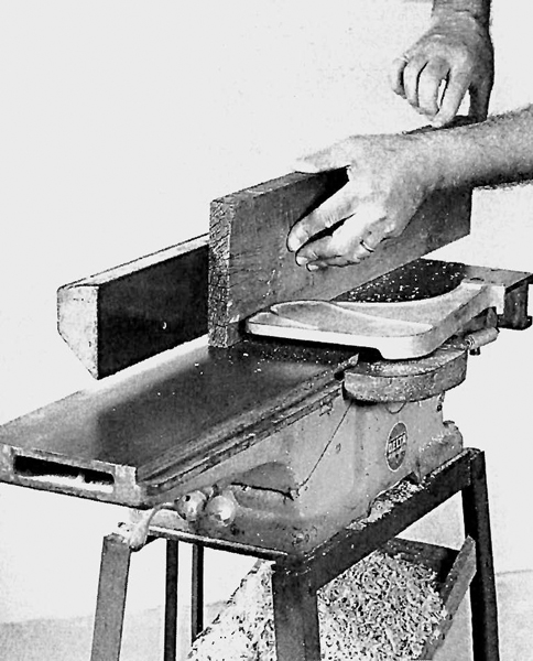3. Выровняйте одну пласть доски. Следующим шагом является фугование одной стороны, и делаете вы это на фуговальном станке. 150-миллиметровый фуговальный станок, показанный на фото Шаг 3, довольно типичен для домашних мастерских.