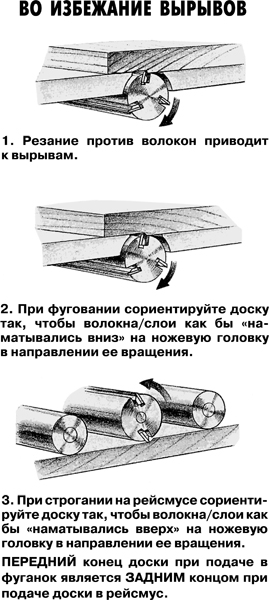 Сначала займитесь станком. Установите высоту подающего стола, так чтобы станок снимал с доски не более 1,6 мм (1/16 дюйма) за проход.