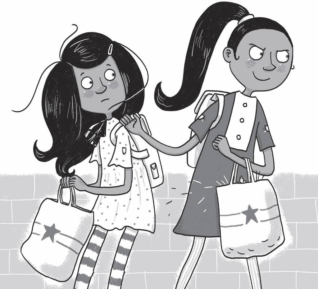 ‘Fine,’ she said. And then she fixed Rani with a LOOK. ‘Make sure you take care of your little sister on her first day.’