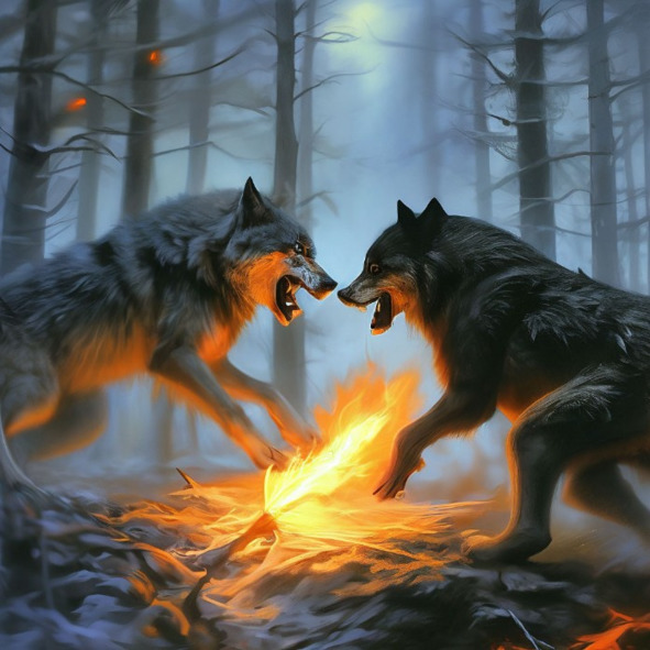 Однажды ночью, когда все волки спали, один из них проснулся и почувствовал что-то неладное. Он услышал странные звуки, доносившиеся из глубины леса. Волки были очень любопытными и решили пойти на разведку.