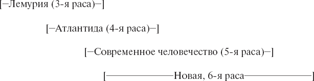 Таким образом, согласно теософскому учению, начало новых циклов развития планеты и человечества сопровождается глобальными природными катаклизмами, при которых одни континенты поднимаются со дна океанского ложа, а другие континенты, наоборот, опускаются в океанские воды, как это произошло с землями Атлантиды. Человеческие расы и подрасы появляются и исчезают, сменяя друг друга не строго последовательно, а как бы накладываясь одна на другую: в эпоху существования расы атлантов на соседних континентах появились первобытные люди – предшественники нашей расы, точно так же, как и в современном мире появляются первые люди новой, более духовной, чем мы, расы (на Западе одаренных детей, предположительно принадлежащих к новой расе, назвали детьми индиго).