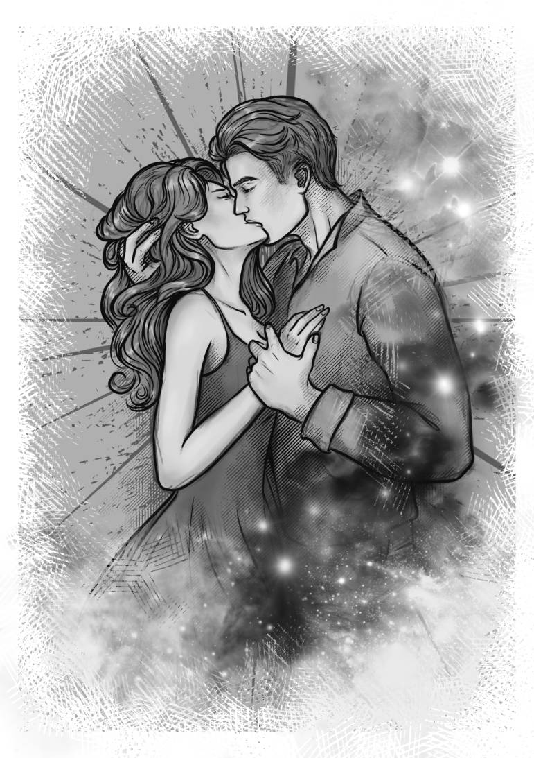 Он подошел ближе, наплевав на личные границы. А были они вообще? Его руки нагло скользнули на мою талию, прижимая к себе. Ощутив холодной кожей горячее дыхание на шее, мое сердце облилось кровью. По позвоночнику вверх плавно поднимались мужские пальцы. Достигнув шеи, они слегка сжали горло, не получив сопротивления. Я ощутила, как он вдыхал мой запах, как кончик его носа нежно касался моей стиснутой от напряжения скулы. Мне стоило бы его оттолкнуть, кем бы он ни был, но очарованно я стояла не в силах запретить ему действовать. Его руки прикоснулись к обнаженным плечам, отпустив шею и талию, и спустились вниз к ладоням, переплетая наши пальцы. Мое тело предательски дрогнуло. Воздуха катастрофически не хватало. Внутри все сжалось от непонятной ноющей боли.