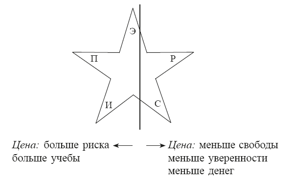 В главе 10 рассматриваются принципы, которыми должны руководствоваться предприниматели, стремящиеся построить эффективную и прибыльную фирму. Здесь вы также сможете узнать, на что надо обращать внимание тем, кто готов перебраться с «надежной» правой стороны звезды на левую.