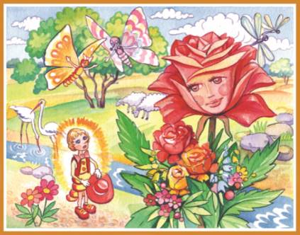 Мимо Розочки пролетала Стрекоза. Она села на её листочек и спросила: