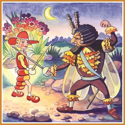 – Вы повержены, Шмель! В честной битве я одержал победу!– сказал Светлячок, а затем убрал шпагу в ножны, повернулся и стал уходить.