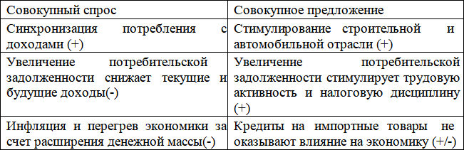 Таблица 1. Влияние расширения кредитного спроса на совокупный спрос и совокупное предложение