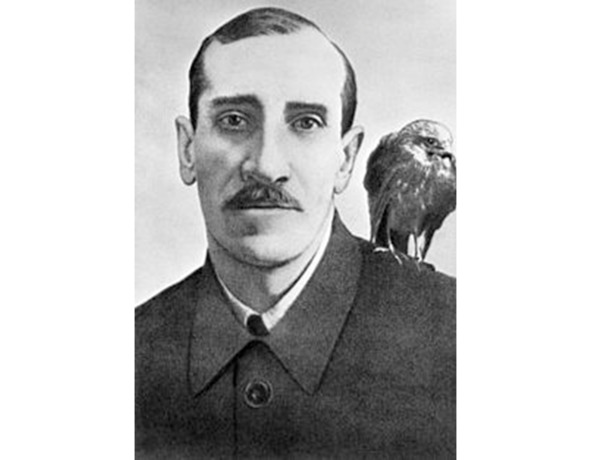 Александр Грин со своим любимым ястребом (1929 г.)