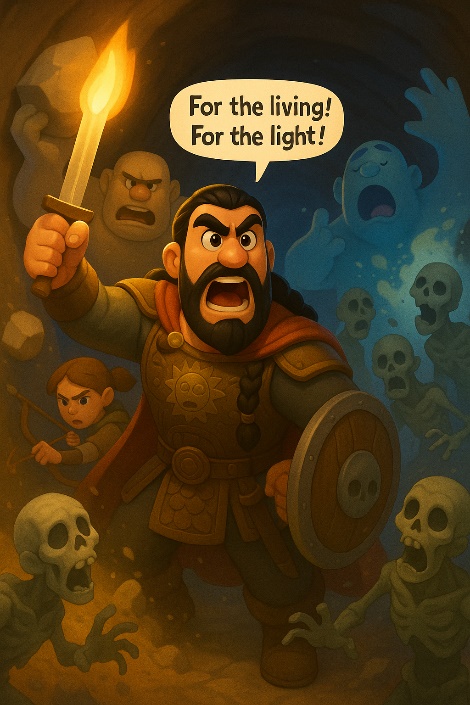 Descended into an underworld to reclaim his sister’s soul – defeated the Stone Sentinel with hollow eyes.