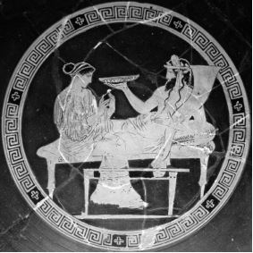 Афина угощает Геракла. Рисунок на древнегреческой вазе. V в. до н. э.