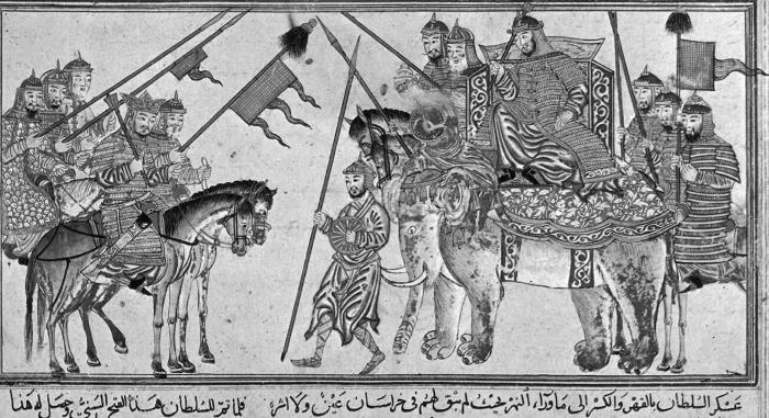 Неизвестный автор. Правитель Караханидов, илиг-хан, верхом на коне подчиняется правителю Газневидов Махмуду Газневи. 1306–1314 гг.
