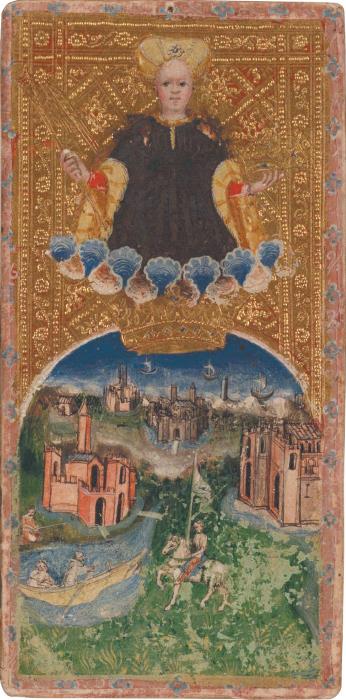 Вариант карты Мир из Таро Висконти – Сфорца. Библиотека редких книг и рукописей Бейнеке. Йельский университет. XV в.