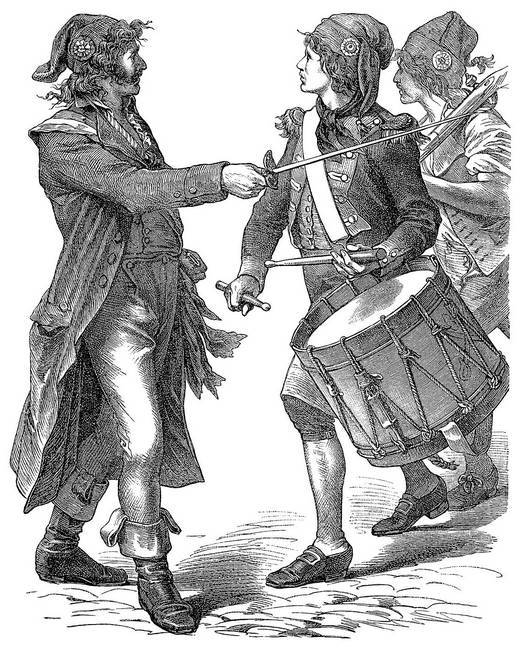 Санкюлоты. Гравюра из цикла «История костюма» (Zur Geschichte der Kostüme), публиковавшегося в Мюнхене с 1861-го по 1880 г. издательской фирмой «Браун и Шнайдер»