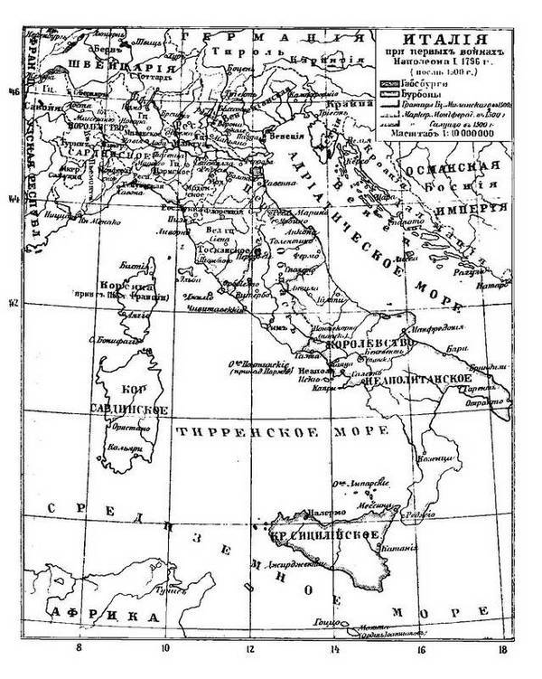 Италия в начале эпохи Наполеоновских войн. Карта из Энциклопедического словаря Брокгауза и Ефрона