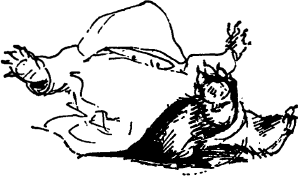 And then the worst happened. One moment he was running along the road mopping his brow and glancing anxiously over his shoulder at the pursuing biscuit, the next moment it was just as if he had stepped into a great pool of treacle. The more he tried to move his legs, the more impossible it became, until quite suddenly he woke with a start and found himself sitting on the deck almost completely enveloped in his duffle coat.