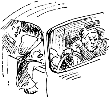 “I’m afraid I shall have to stand up to drive,” he announced, as he clambered to his feet. “I can’t see out properly if I’m sitting down, but I’ll get there as quickly as I can.”