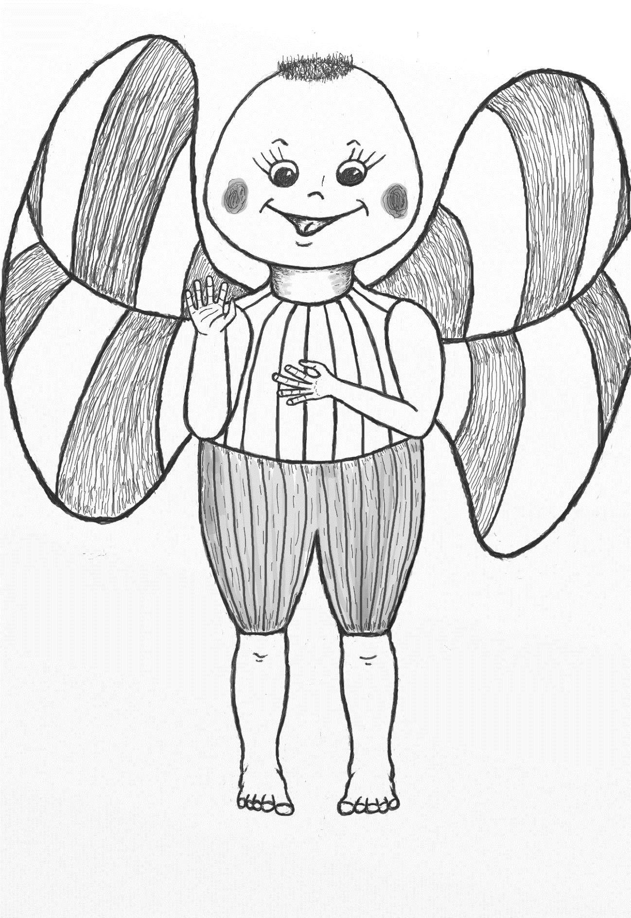 Жил да был на свете Букася, а может и сейчас живёт. Сам он хотя и маленький, но такой крепенький. Ручки у него ловкие, ножки быстрые, а какая хорошая головка: кругленькая, ладненькая. Всем хочется её погладить. Щечки румяные, глазки голубые. Голосок у него приятный, как у девочки после того, как она съест мороженное. А какие у него крылышки красивые: мягкие, узорчатые. Букася очень добрый, и люди относятся к нему ласково.