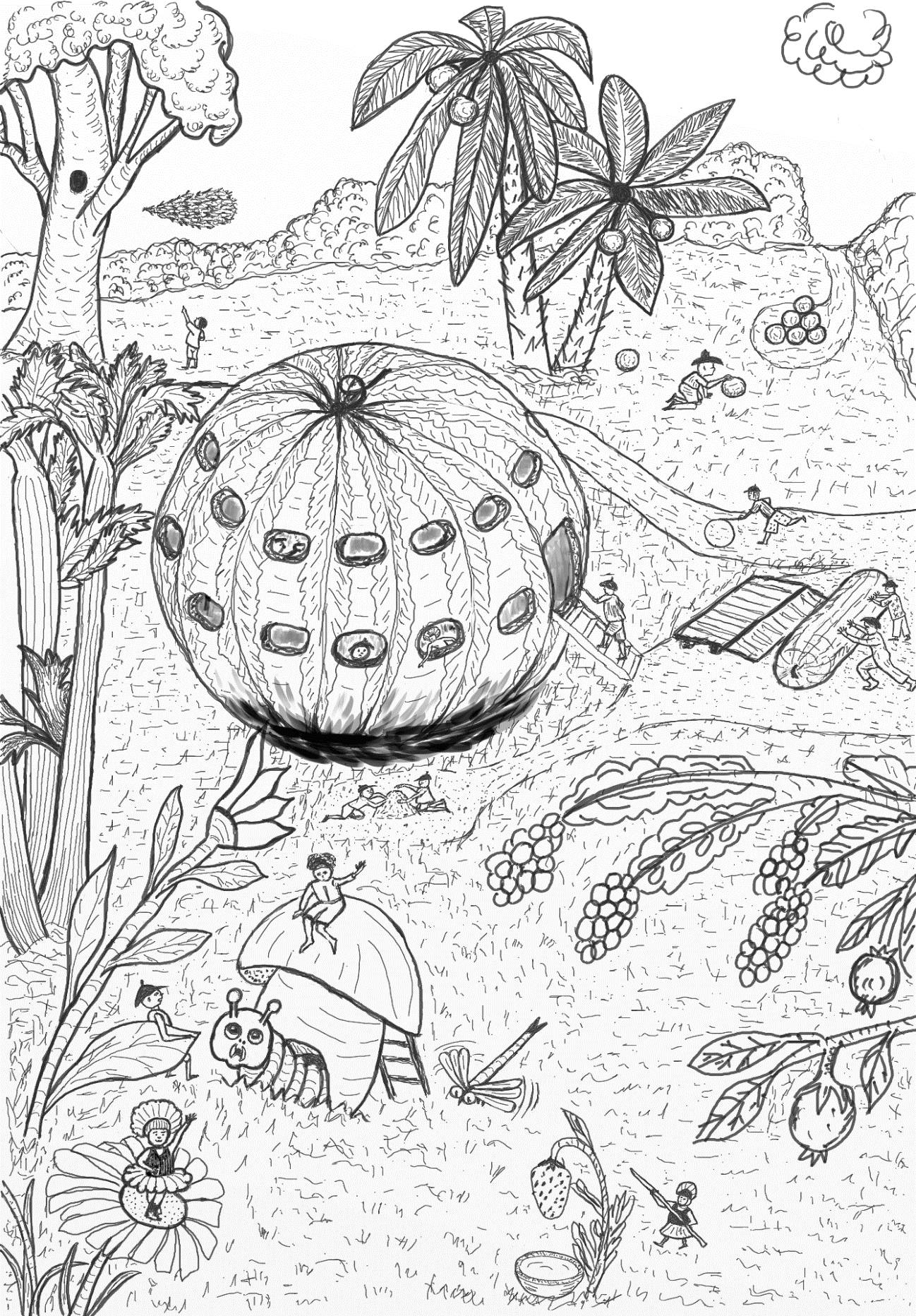 Вы скажете, так почти всё это и у нас растёт. А вот и нет. Человечки-то там маленькие, а все плоды и ягоды очень большие. Всего одну ягодку съест человечек и наестся. А одного помидора или огурца хватает, чтобы наесться целой семье.