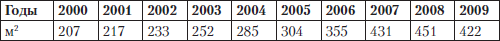 Таблица 6.1. Построено жилья по годам в России (млн м2)