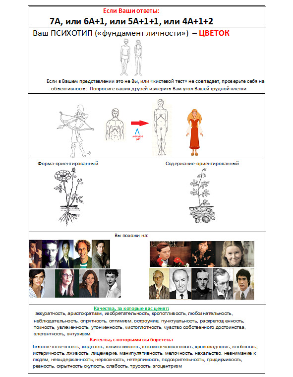 Единственным объективным показателем при определении психотипа является угол грудной клетки, который может быть только «прямым», «тупым» или «острым». «Четвертого» в данном случае не дано.