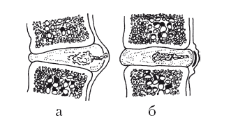 Как уже отмечалось, уменьшение высоты диска при остеохондрозе приводит к перегрузке дугоотростчатых суставов и развитию в них артроза, который существует в сочетании с остеохондрозом.