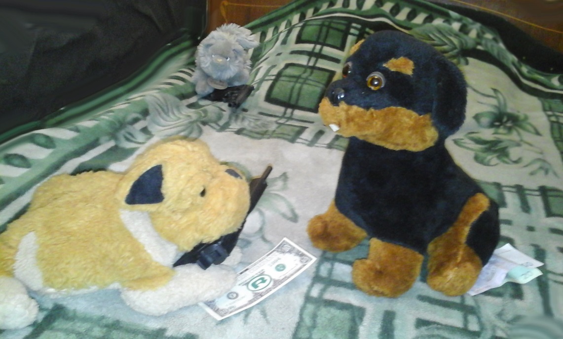 Порывшись там, он достал несколько пачек собаксов и, кажется, тихо прорычав, протянул их Террористу. Вероятно, Рыкала надеялся, что его лучший боец не станет пересчитывать полученное, однако, к главарскому ужасу, Бобик, едва лишь взяв деньги, принялся их усердно считать. Сперва с каждой учтённой купюрой морда Бобика выражала всё большее удовлетворение, однако, когда последняя пачка собаксов стала подходить к концу, он вдруг насупился. Наконец, досчитав, он вдруг оскалил зубы и рявкнул: