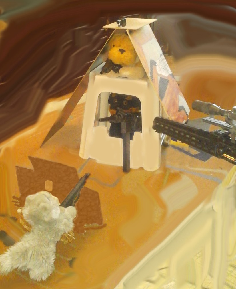 Пока мы прятались от пулемётного огня, решили провести небольшие подсчёты. Среди нас тяжелораненных не было, так, на всех только три раны в лапу и одна в плечо, а у собак, скорее всего, покоцан был каждый второй. Судя по истраченным магазинам, мы с псами успели обменяться почти пятьюдесятью залпами, а в запасе у нас оставалось ещё по два магазина на каждого. Дальше следовало вести огонь аккуратнее, чтобы не остаться без боезапаса, либо же прекращать обстрел и идти непосредственно на штурм, что было пока ещё рискованно. Мантелет наш был уже почти полностью покрыт «рельефом» от угодивших в него пуль, но держался, сквозные дыры были только три, и те на краях. Итак, мы заметно поуменьшили темп стрельбы, тщательно целясь и делая промежутки между выстрелами, чтобы не уводило лапы пусть и небольшой, но всё же существующей отдачей. Псы же отстреливались так же, как и раньше, что вкупе с заметно большей скорострельностью у их автоматов привело к тому, что по крайней мере треть псов осталась без боезапаса, в то время как у нас оставалось ещё по целому магазину, плюс ещё несколько гранат, для метания которых следовало подойти ближе. Снайперский огонь тоже слегка притих, видимо, Бобик-террорист также стал экономить патроны, но у котов, находящихся рядом с ним, наверняка ещё были почти полные пистолетные боекомплекты.
