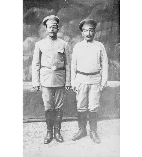 Судя по штампу на титульном листе Евангелия, дед Тихон содержался в лагерях для военнопленных где-то под городом Мюнстером. В память о недобровольном пребывании в Германии дед сфотографировался со своим неизвестным другом. Они стоят рядом в форме русского солдата, в гимнастёрках навыпуск, подпоясанных ремнём, в фуражках и сапогах, руки по швам, и напряженно пытливо смотрят в объектив немцу-фотографу, словно спрашивают, что еще приготовила им судьба-злодейка.