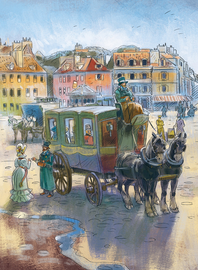 – Не переживай, Чевостик, пройдёт время – и во Франции появится новый вид больших многоместных карет. Пользоваться омнибусом – так назвали этот вид конных повозок – мог каждый желающий. Но, разумеется, заплатив небольшую сумму за проезд. Омнибус стал первым общественным транспортом. В него усаживалось по двадцать человек!